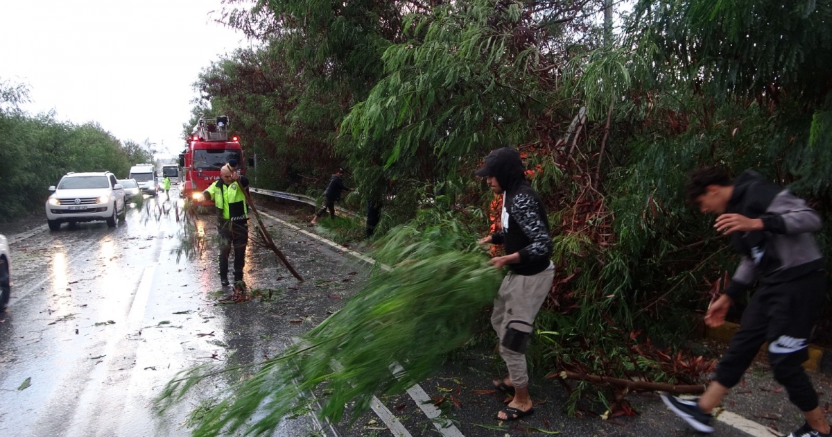 Antalya'nın Manavgat ilçesinde fırtına ve yağmur nedeniyle kırılarak yola düşen ağaç nedeniyle trafik aksadı. Jandarma ve itfaiye ekiplerinin çalışması sonucunda trafik akışı normale döndü.