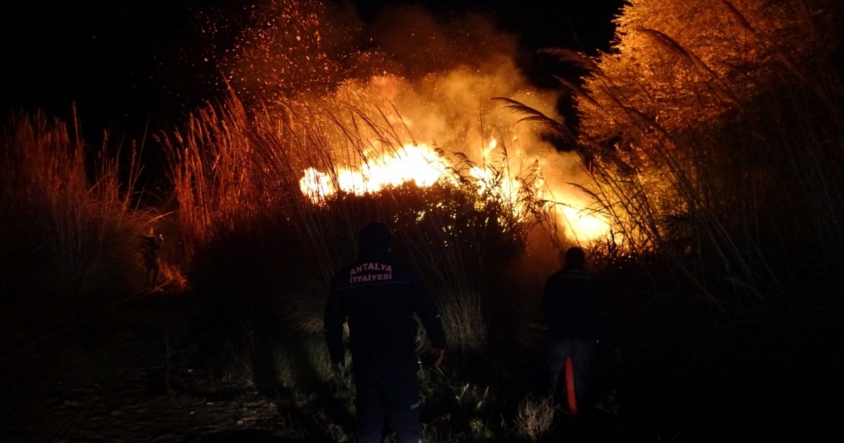 Antalya'nın Manavgat ilçesinde kamışlık ve sazlık alanda yangın çıktı. Şiddetli rüzgar nedeniyle hızla yayılan yangın, itfaiye ve orman ekipleri tarafından kontrol altına alındı.