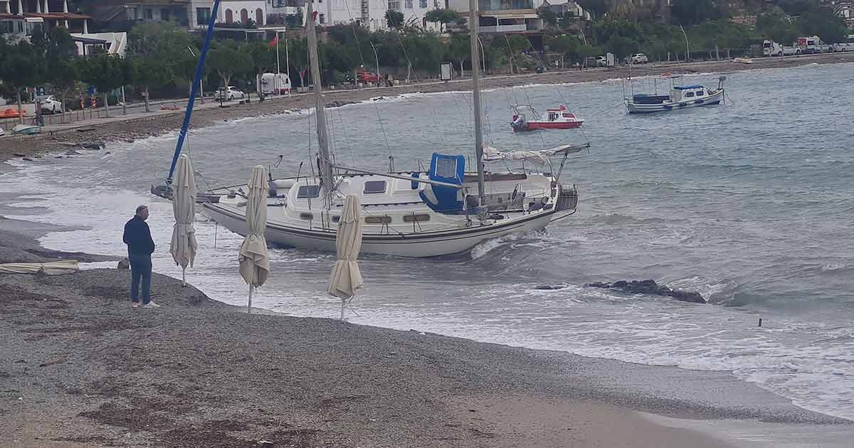 Muğla’nın Bodrum ilçesinde etkili olan kuvvetli rüzgar nedeniyle bir yelkenli karaya sürüklenirken, ilçede deniz ulaşımı da yapılamadı.