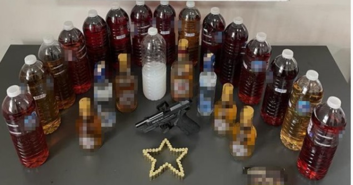 İl Emniyet Müdürlüğü Asayiş Şube Müdürlüğü ekiplerince Vefa Mahallesi üzerinde meydana gelen genel güvenliğin kasten tehlikeye sokulması olayıyla ilgili olarak şüpheli A.O.A.(24) isimli şahsın ikametinde yapılan aramalarda, 1 adet tabanca, 50 adet kurusıkı tabanca fişeği,1 adet kesici alet ele geçirilirken, iş yeri aramasında, içinde kaçak alkol olduğu değerlendirilen 16 adet 1,5 litrelik su şişesi, 3 adet 35 cl, 1 adet 50 cl ve 1 adet 70 cl olmak üzere toplam 5 adet içinde kaçak alkol olduğu değerlendirilen bandrolsüz viski şişesi, 2 adet içinde kaçak alkol değerlendirilen bandrolsüz 35 cl votka şişesi ele geçirildi.