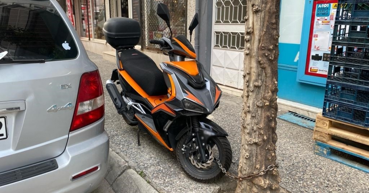 MOTORU ÇALINMASIN DİYE AĞACA ZİNCİRLEDİ