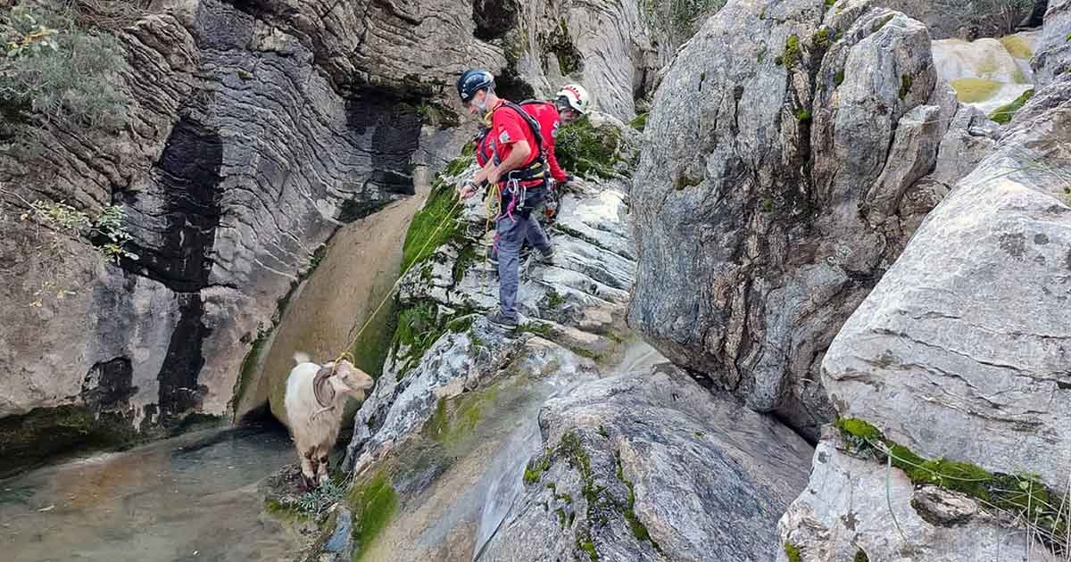 Muğla’nın Marmaris ilçesinde kayalıklarda mahsur kalan keçi Marmaris AKUT ekibi tarafından kurtarılarak sahibine teslim edildi.