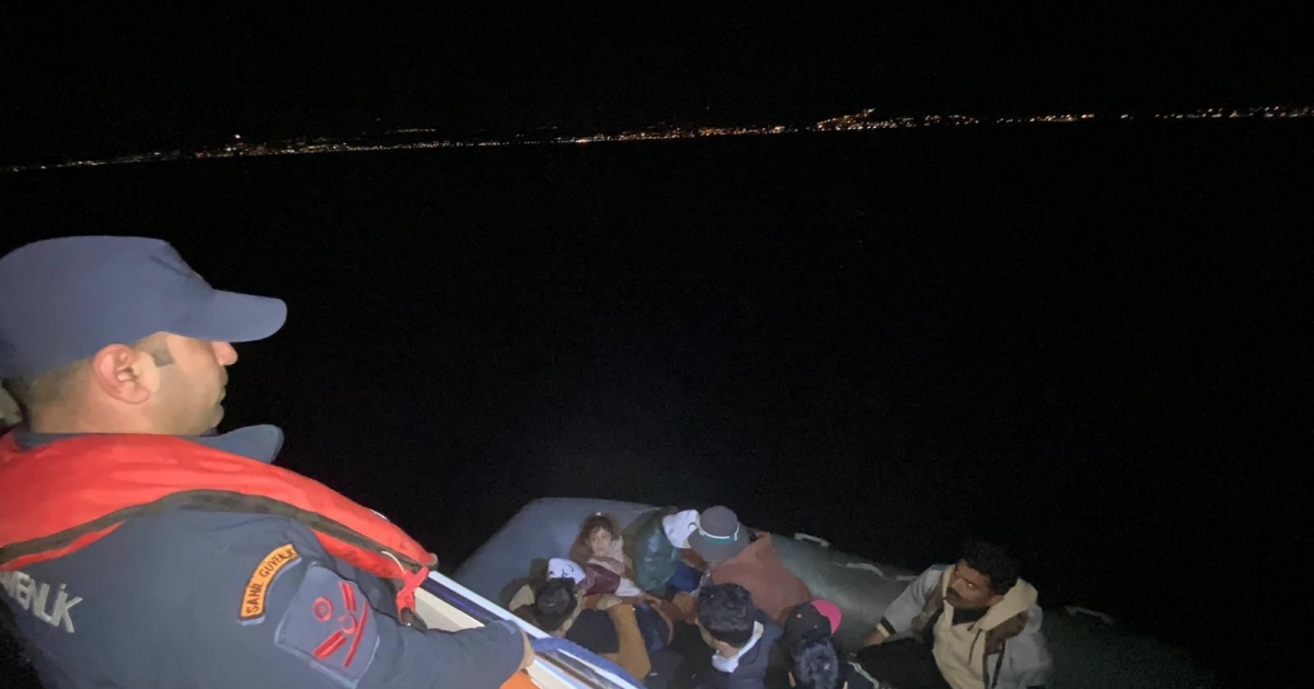 Aydın’ın Kuşadası ilçesi açıklarında lastik bot içerisindeki 10 düzensiz göçmen yakalandı.