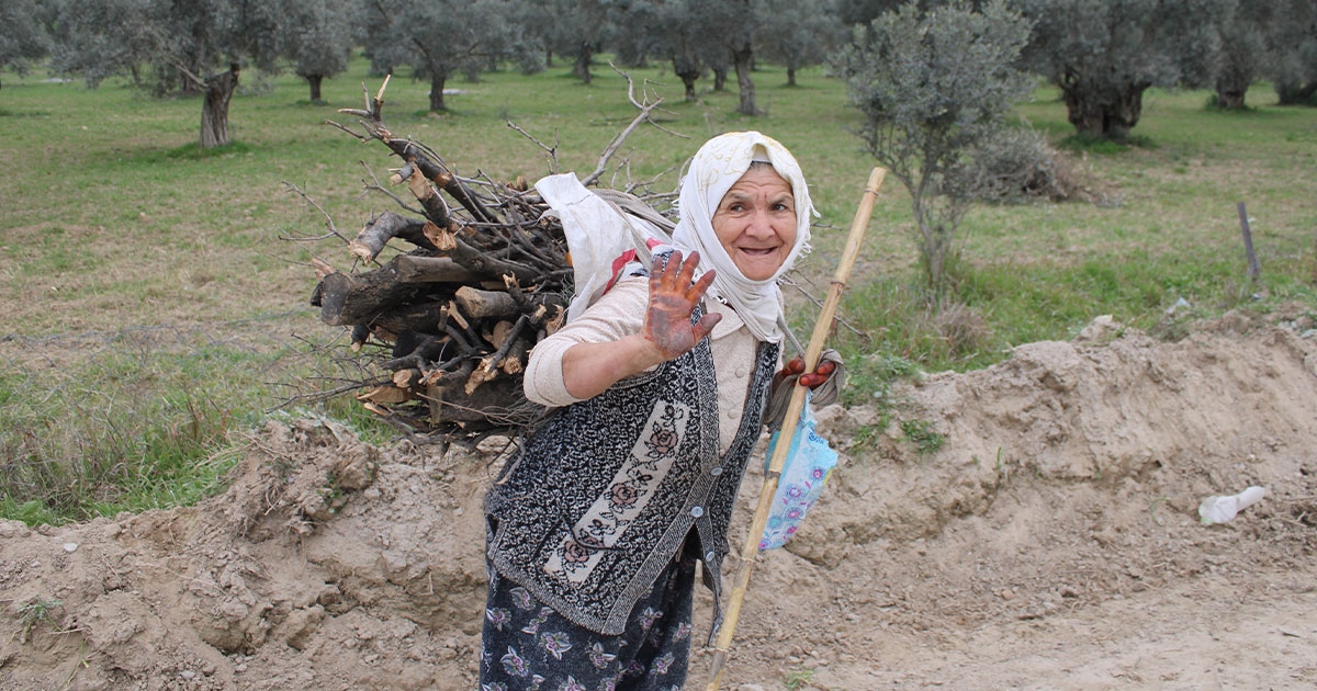 Efeler'e bağlı Kızılcaköy Mahallesi'nde yaşayan 65 yaşındaki Emine Çolak, ilerleyen yaşına rağmen birçok gence taş çıkartıyor. Hasta olan eşinin üşümemesi için dağlara çıkan Emine Teyze, topladığı odunları sırtlayıp evine taşıyor. Çocukları destek sağlasa da yakacaklarının bitmesi üzerine kendi imkanlarıyla odun toplamaya çıkan Emine Teyze, sırtına yüklediği odunlar ile hem ısındıklarını hem de ocakta yakarak yemek yaptığını söyledi.