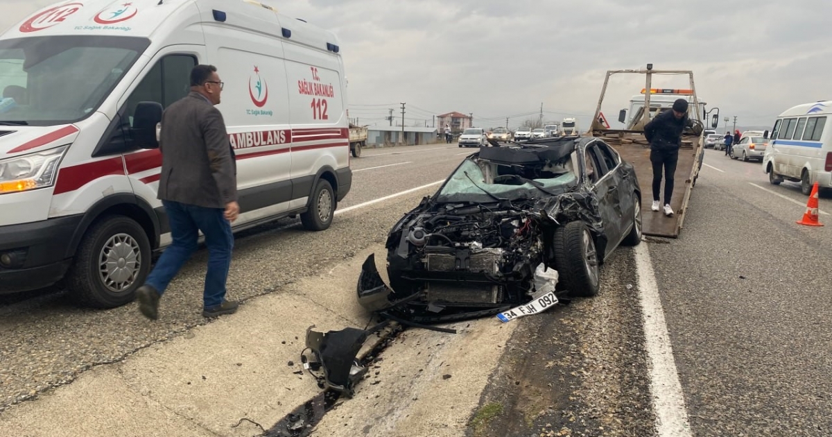 İKİ OTOMOBİL KAFA KAFAYA ÇARPIŞTI