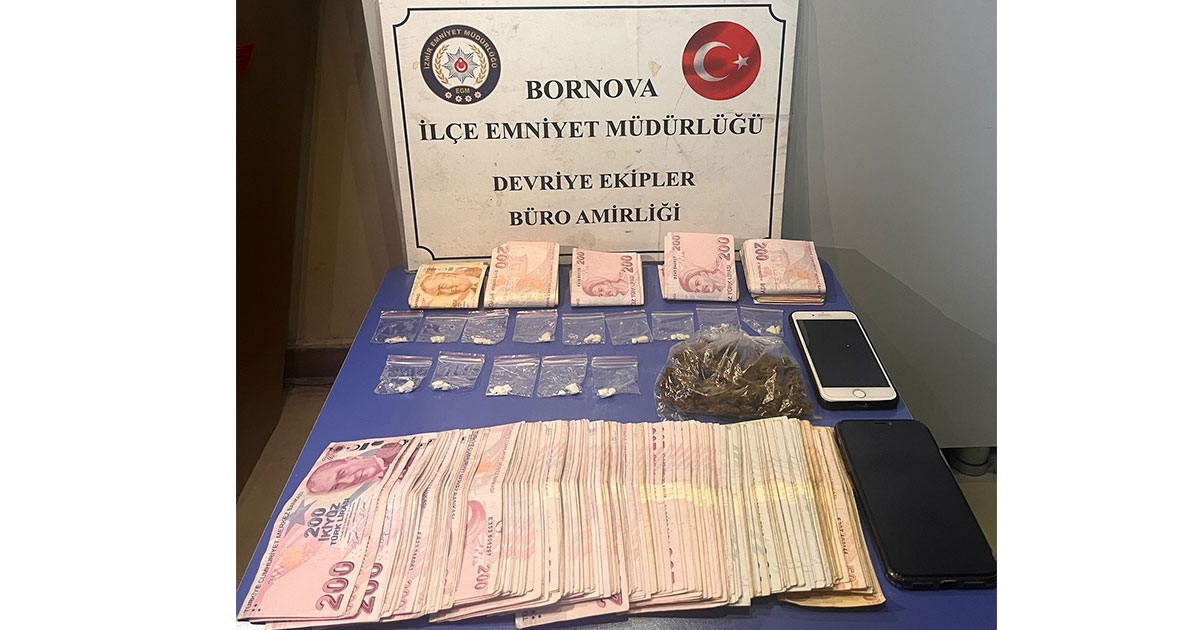 İzmir’in Bornova ilçesinde, şüphe üzerine durdurulan araç sürücüsünün camdan attığı poşetin içerisinden bir miktar esrar, aracın teyp kısmından ise kokain maddesi ile binlerce lira çıktı. Şüpheli, polis ekiplerince gözaltına alındı.
