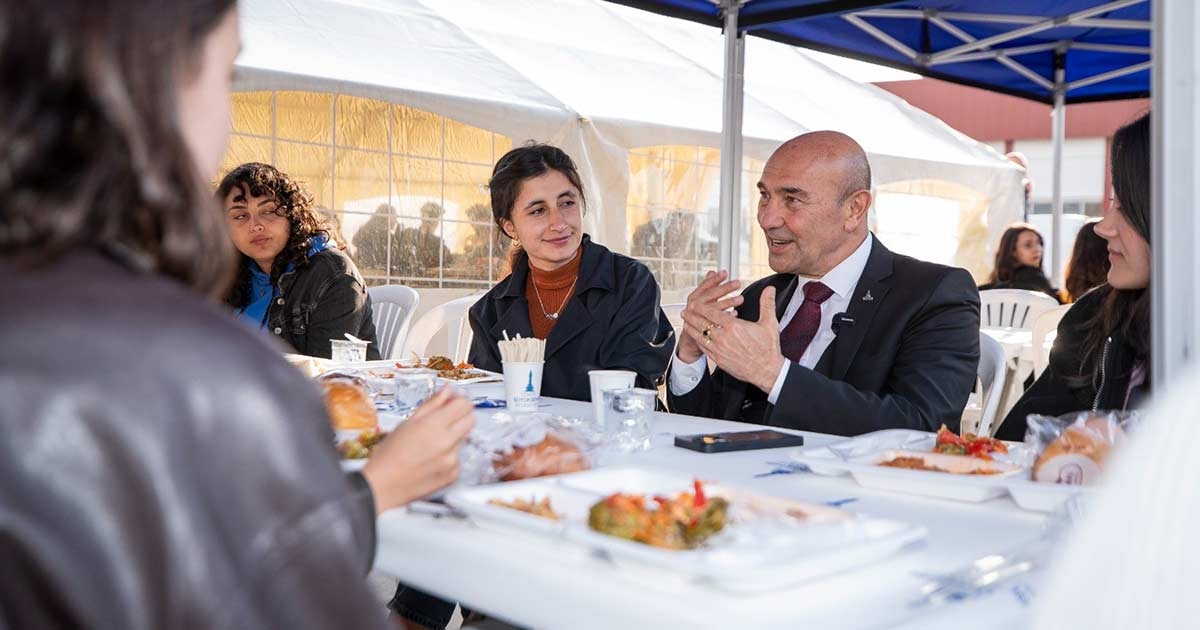 İzmir Büyükşehir Belediye Başkanı Tunç Soyer, İzmir Kâtip Çelebi Üniversitesi’nde gençlerin akşam yemeğine konuk oldu. İzmir Büyükşehir Belediyesi tarafından üniversite öğrencilerine nefes aldıran ücretsiz yemek dağıtımına katılan Başkan Tunç Soyer, gençlerle sohbet ederek uygulamadan memnuniyetlerini sordu. Eğitimden siyasete gençlerin sorularını cevaplayan Başkan Soyer, öğrencilerle hatıra fotoğrafı da çekildi.