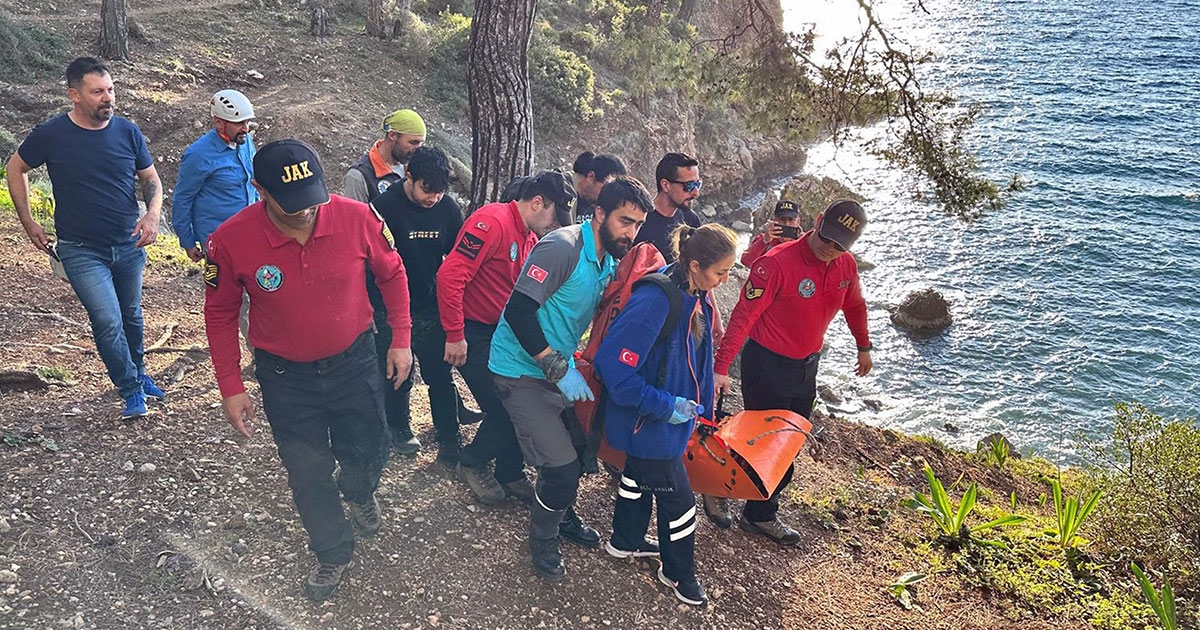 Muğla Fethiye ilçe Kabak koyunda yürüyüş yaparken ayak bileğini büken vatandaş için Jandarma JAK, UMKE, AFAD ekipleri seferber oldu.
