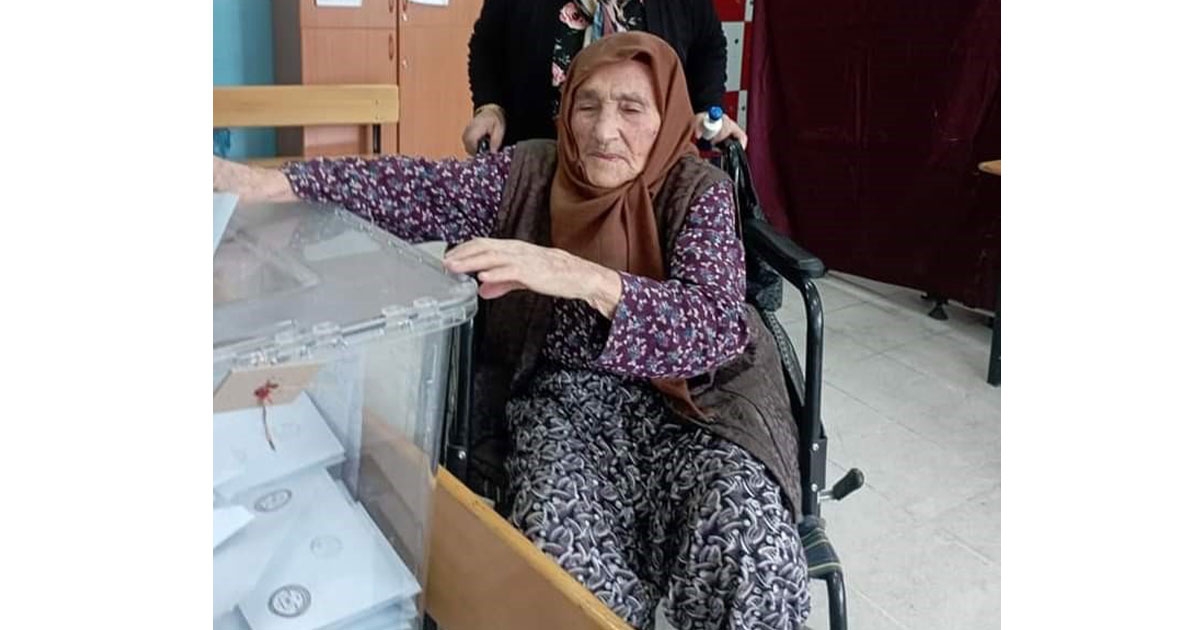 Sarıgöl Aşağıkoçaklar Mahallesinde yaşayan 5 çocuk sahibi 94 yaşındaki Fatma Dereli, Şehit Esin Akay İlkokulu'na gelerek 1086 Nolu sandıkta oyunu kullandı. Geçtiğimiz yıl yapılan genel seçimde rahatsızlığı nedeniyle oyunu kullanmayan Fatma Dereli (94), bu seçimde kızı Gülseren Şengel (64) ile okula gelerek vatandaşlık görevini yerine getirdi. Fatma Dereli, "Sağ olduğum mühletçe oyumu kullanacağım. Hayırlısı olsun." dedi.