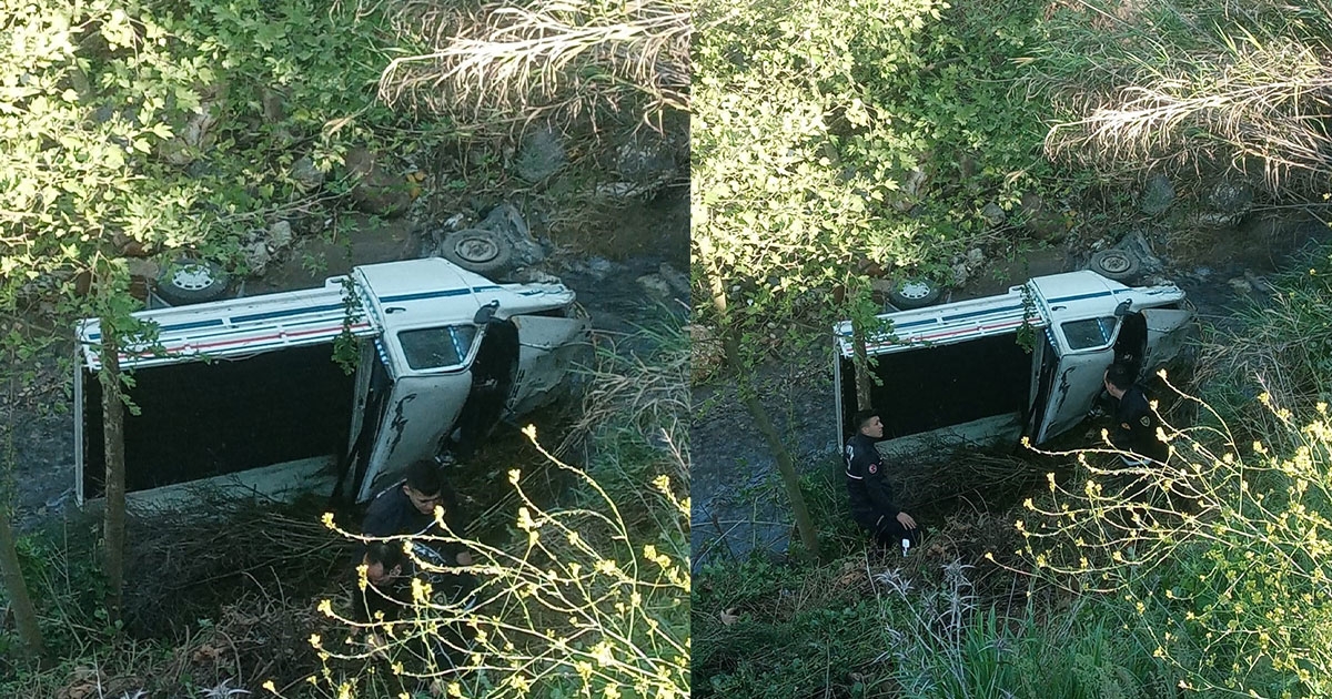 DİREKSİYON HAKİMİYETİNİ KAYBEDEN KAMYONET DEREYE UÇTU: 2 YARALI
