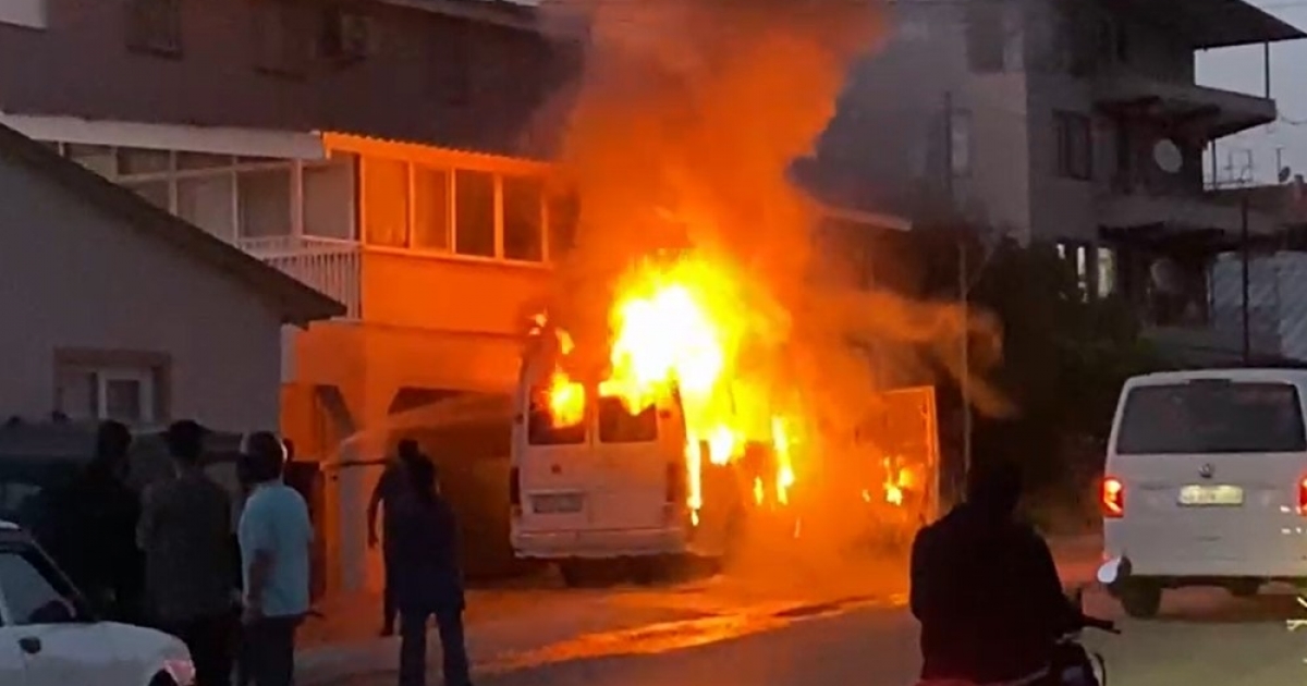 Muğla'nın Fethiye ilçesinde minibüste çıkan yangın yanındaki binaya sıçradı. Minibüs tamamen yanarken, evde de maddi hasar meydana geldi.