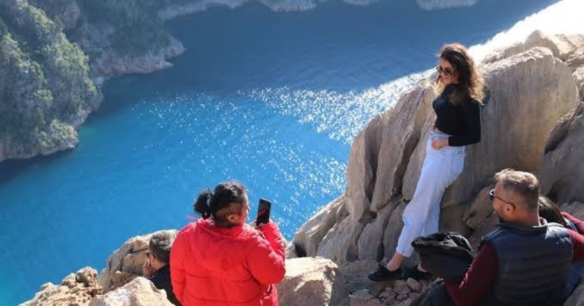 Muğla'nın Fethiye ilçesinde dünyaca ünlü Kelebekler Vadisi'nin eşsiz manzarasını görmek için yaklaşık 300-350 metre yüksekliğindeki kayalıklara çıkan yerli ve yabancı tatilciler düşme tehlikesine aldırmadan uçurumun kenarında eşsiz manzarayı görüntülemek ve bir öz çekim yapmak için tehlikeyi göze alıyor.