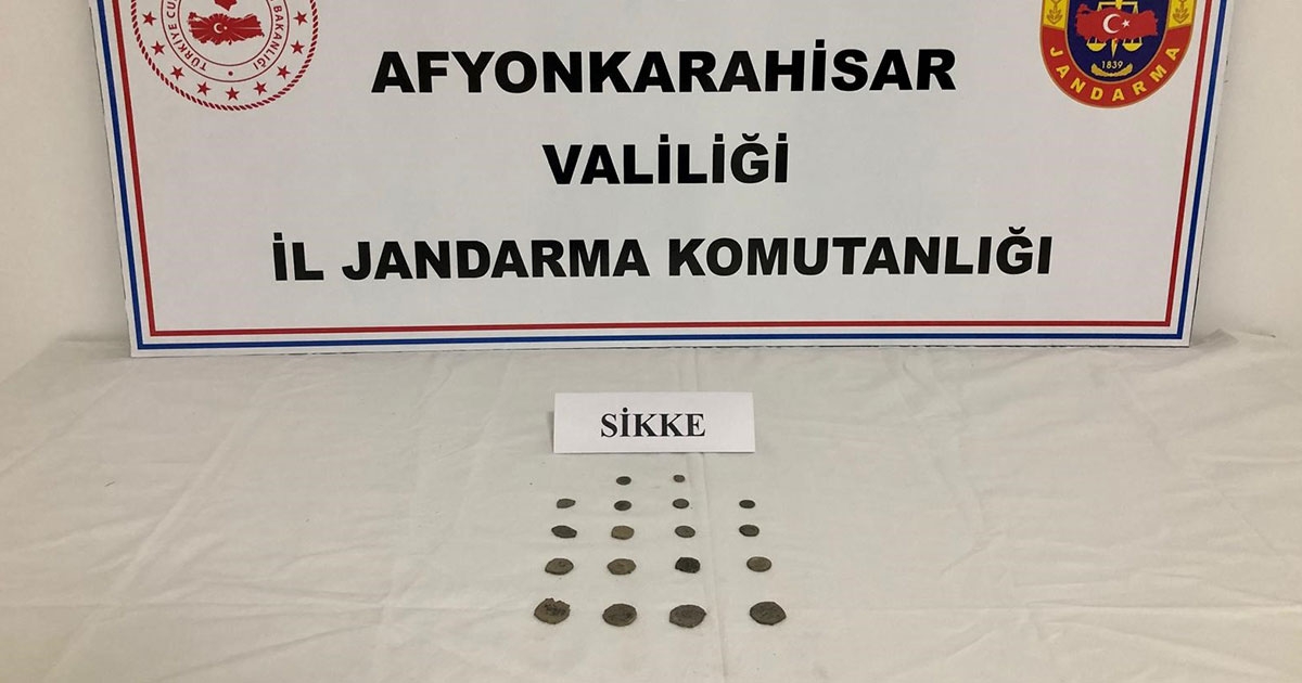 Afyonkarahisar İl Jandarma Komutanlığı ekipleri, elinde tarihi eser obje olduğunu belirlendiği bir kişiyi yakalayarak gözaltına alırken, 18 adet tarihi sikkeye de el koydu.