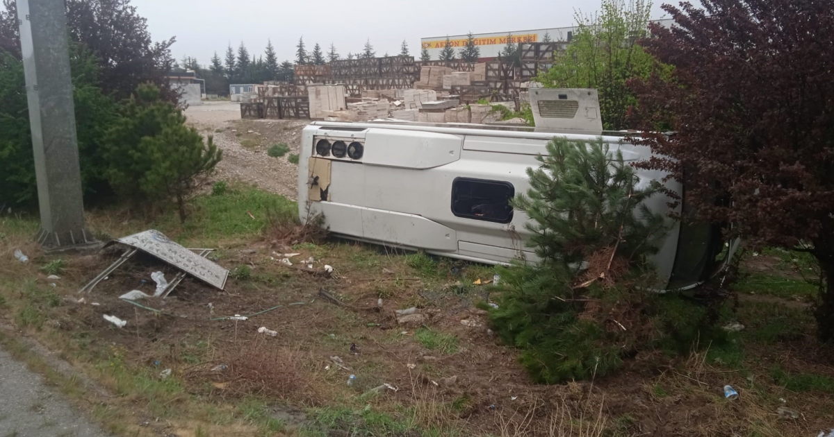 Afyonkarahisar'da kontrolden çıkan minibüs, yol kenarındaki ağaç ve tabelaları devirerek bir fabrikanın bahçesinde yan yatarak durabildi. Kaza sonucunda 5 kişi yaralandı.