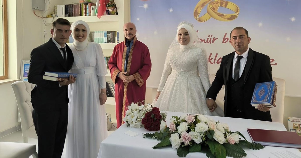 Nikah işlemlerine devam eden Gediz Müftülüğü son olarak iki kardeşin nikahları kıyıldı.