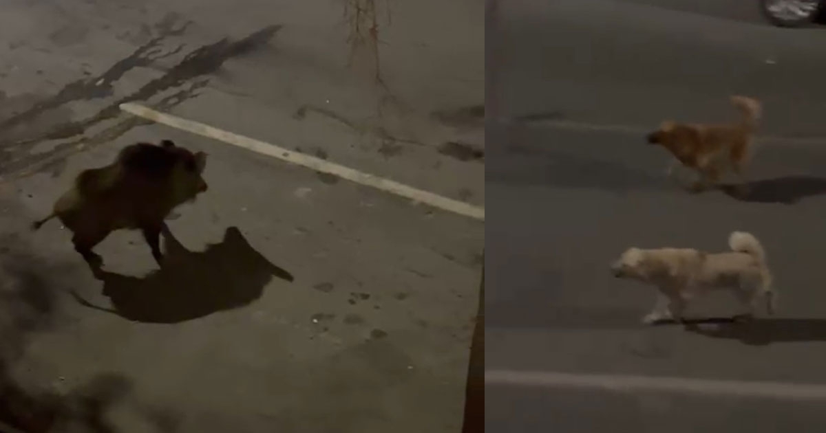 Zaman zaman Bodrum'un çeşitli mahallelerinde domuzlar şehre inerek yemek arıyor. Önceki gün Bodrum'un Kumbahçe Mahallesi Atatürk Caddesi üzerinde aç kalan domuz mahalle arasındaki çöp konteynerinden yemek yerken görüntülendi. Domuzu gören köpekler üzerine giderek havlamaya başladı. Domuz ise bu durumdan rahatsız olup köpeklerin üzerine yürüyüp gözdağı verdi. O anlar cep telefonu kamerasına anbean yansıdı.