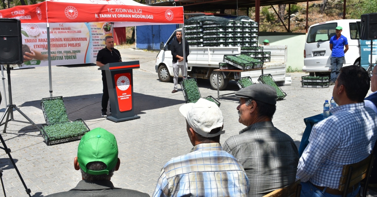 Aydın’ın Bozdoğan ilçesinde domates üretiminin yaygınlaştırılması hedefiyle düzenlenen törende üreticilere 30 bin domates fidesi dağıtıldı.