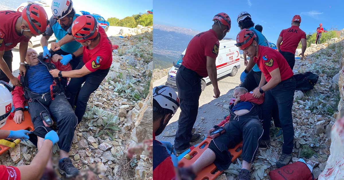 Muğla'nın Fethiye ilçesinde Babadağ pistinden kalkış yaptığı sırada paraşütünün açılmaması sonucu kayalıklardan düşerek yaralanan 77 yaşındaki İngiliz paraşütçüyü, UMKE ve JAK ekipleri kurtardı.