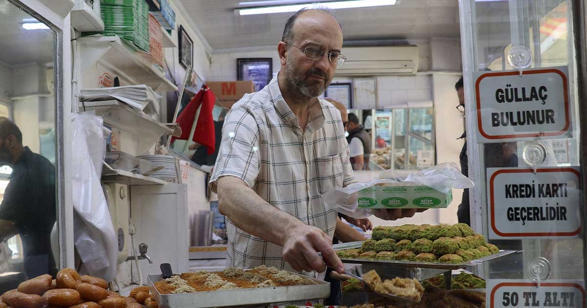 “Mesela antep fıstığımız Gaziantep’ten gelmektedir. Tereyağımız, sadeyağımız Diyarbakır yöresinden; cevizimiz Ege Bölgesi’nden gelmektedir. Bunlar önemli tat açısından; çünkü bunların verdiği tadı alamazsınız. Müşterilerimiz bizi tercih ediyor, bizde onun içi çok dikkat ediyoruz malzemelerimize. 5-10 yıldır maliyetler zorluyor; ama ayakta kalmaya çalışıyoruz müşterilerimiz sayesinde” diye konuştu.