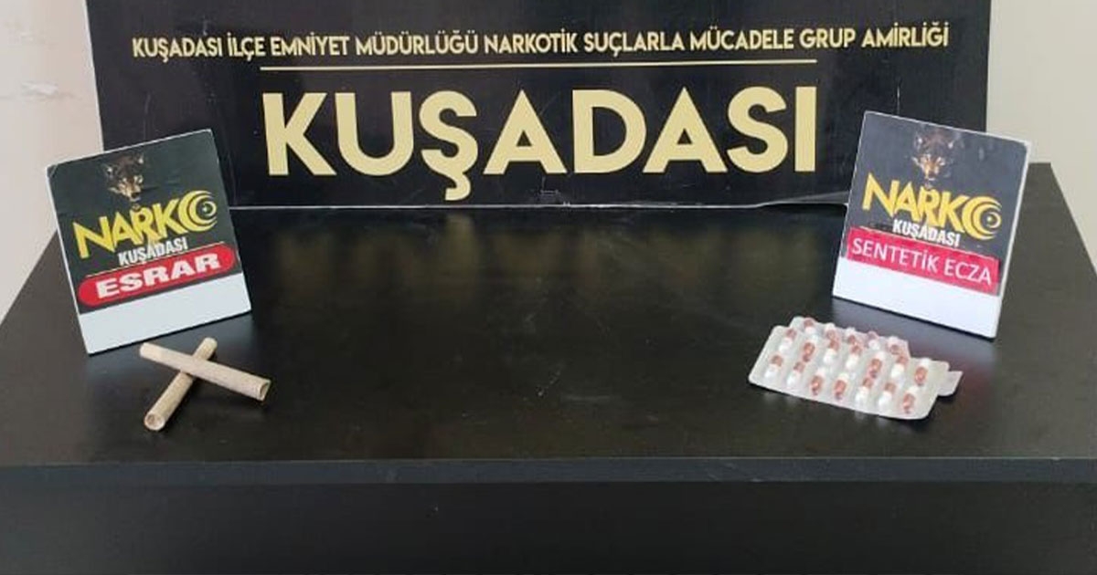 Kuşadası İlçe Emniyet Müdürlüğü Narkotik Suçlarla Mücadele Büro Amirliği ekipleri, ilçemiz genelinde uyuşturucu ile mücadele kapsamında sürdürdükleri çalışmalarına hız kesmeden devam ediyor. Bu kapsamda elde edilen bilgiler doğrultusunda Kuştur Uygulama Noktası’nda kontrollü olarak durdurulan bir araçta arama gerçekleştirildi. Araçta yapılan detaylı aramalar neticesinde 26 adet yeşil reçeteye tabi hap, 5,81 gram tütünle karışık esrar maddesi ele geçirildi. Araçta bulunan C.Z. isimli şahıs hakkında gerekli yasal işlemler başlatılarak Emniyet Müdürlüğü’ne götürüldü.