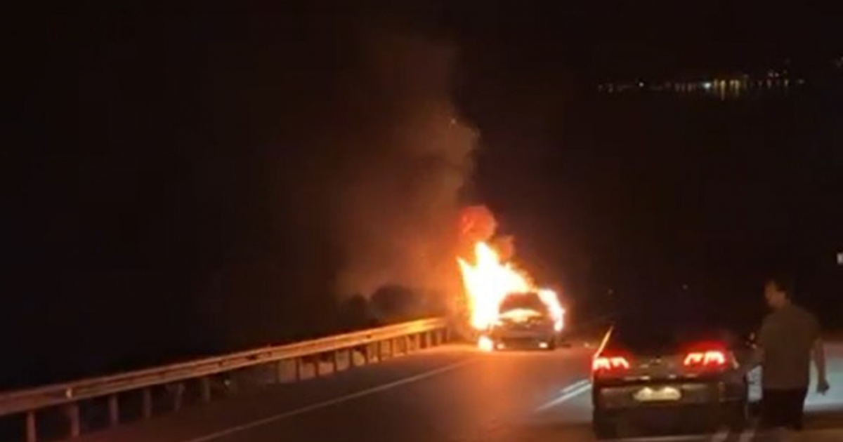 Marmaris Datça karayolu Balıkaşıran mevkiinde gece saatlerinde hareket halindeki araç yanarak kullanılmaz hale geldi. Araç içindeki vatandaşlar dumanı fark edince aracı terk etti.