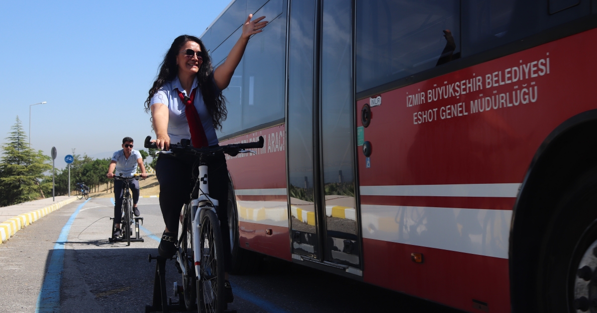 İzmir Büyükşehir Belediyesi ESHOT Genel Müdürlüğü ve Bisikletli Ulaşımı Geliştirme Derneği (BUGEP) iş birliğiyle 3 Haziran Dünya Bisiklet Günü kapsamında farkındalık eğitimi etkinliği gerçekleştirildi. Balçova'daki ESHOT Genel Müdürlüğü Otobüs Garajı Ve Eğitim Tesisinde gerçekleşen etkinliğin ilk kısmında 30 dakikalık teorik sunumda bisikletin trafikteki yeri ve Karayolları Trafik Kanunundaki hakları konusunda bilgilendirme yapıldı. Otobüs eğitim pistinde gerçekleşen ikinci kısımda ise, kurulan test alanında ESHOT sürücüleri bisiklete bindirilerek simülasyon ortamı oluşturuldu. Yakın mesafeden geçen ve korna çalan bir otobüsün, bisiklet üzerindeki etkisini deneyimleyen ESHOT sürücüleri, bisiklet sürücülerinin trafikte yaşadıkları zorlukları birebir yaşadı.