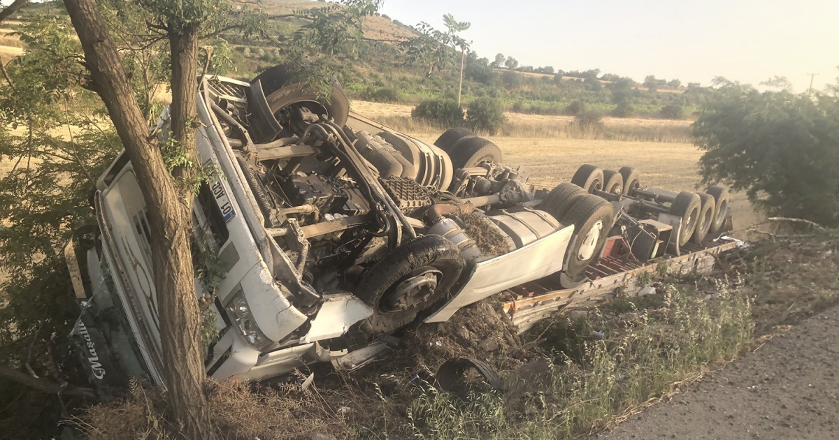 Manisa’nın Kula ilçesinde lastiği patlayarak yoldan çıkan tıra yardım etmek için yavaşlayan bir diğer tıra arkadan çarpan kamyonet devrildi. Kazada 2 kişi yaralandı.