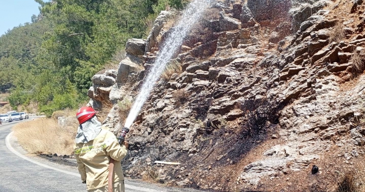 Muğla'nın Marmaris ilçesinde yol kenarındaki otluk alanda çıkan yangın ormana sıçramadan ekiplerin zamanında müdahalesi ile söndürüldü.