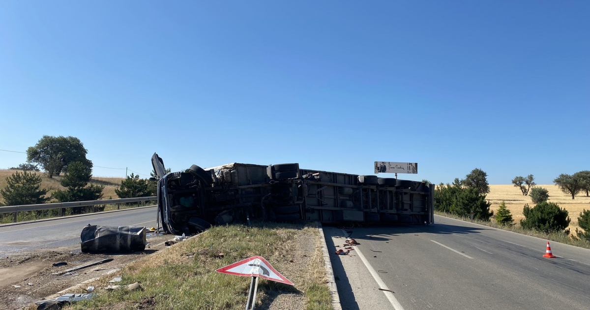 Afyonkarahisar’da meydana gelen trafik kazasında orta refüje devrilen tırın sürücüsü kazayı hafif yaralı olarak atlattı.