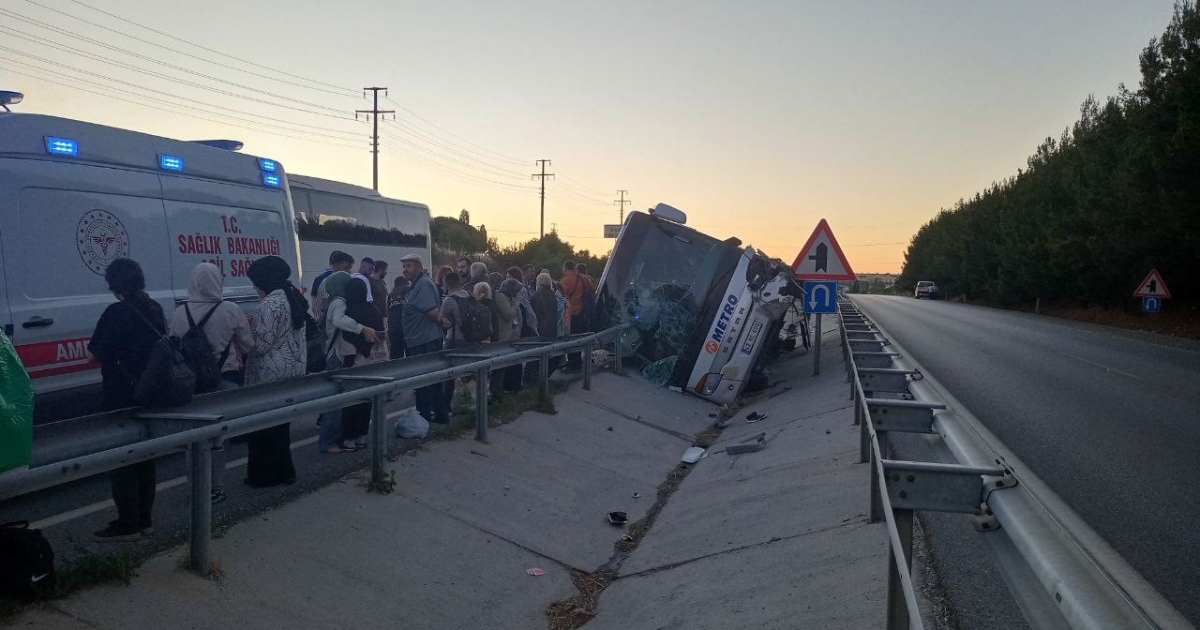 Edinilen bilgiye göre, Hatay’dan aldığı yolcuları İzmir'e götüren 42 RC 600 plakalı Setra marka yolcu otobüsünün 32 yasındaki sürücüsü O.Ö., Uşak girişindeki Göğem Kavşağı yakınlarında direksiyon hakimiyetini kaybetti. Kontrolden çıkan otobüs, bordür taşlarını aşarak karayolunun ortasındaki yağmur suyu tahliye kanalına devrildi. Yan yatarak sürüklenmeye başlayan otobüs, demir bariyerlerin arasında bir süre sürüklenerek durabildi.