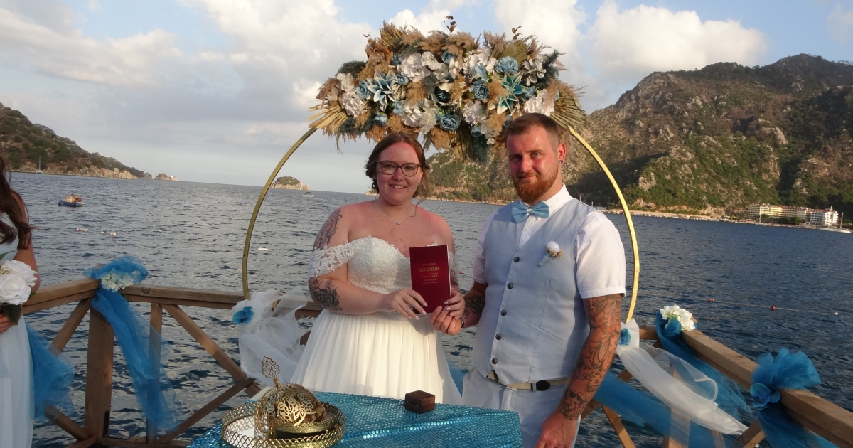 Marmaris'e 11 kilometre mesafedeki İçmeler Mahallesi plajında düzenlenen İngiltere'den gelin damadın aileleri ve arkadaşlarının katılımı ile düzenlenen nikah merasiminde 5 yıllık arkadaşlıklarını evlilik ile taçlandıran genç çift, birlikte çıktıkları ilk tatil olduğu için burada evlenmeyi tercih ettiklerini belirttiler. Babasının kolunda nikah masasına gelen gelini gören damat mutluluk gözyaşlarını tutamazken gelin Kate'in şen kahkahaları, arkadaşları ve ailelerini de mutlu etti.