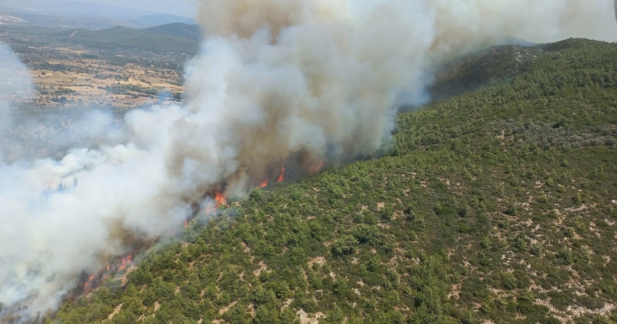 Muğla'nın Bodrum ilçesinde orman yangını meydana gelirken, ekipler yangını kontrol altına alabilmek için havadan ve karadan yoğun çalışma başlattı.