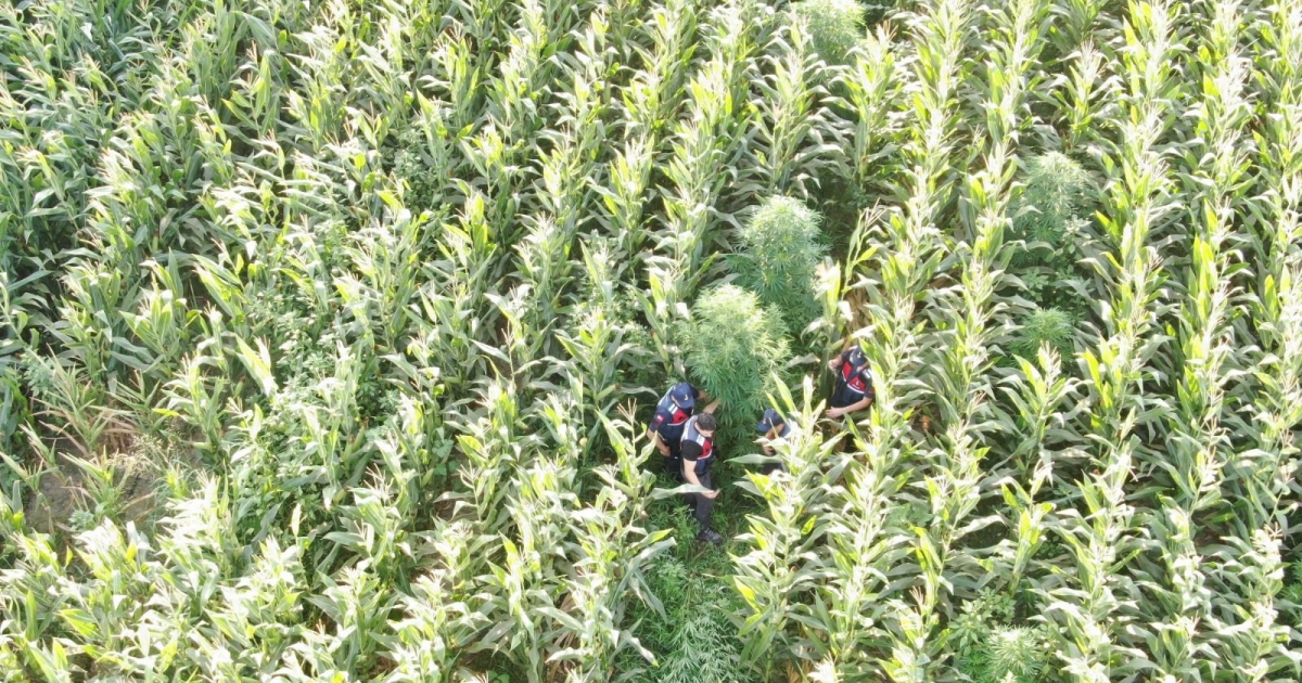 Kenevirler, mısır tarlasından jandarma ekipleri tarafından tek tek sökülürken, H.Y. gözaltına alındı.