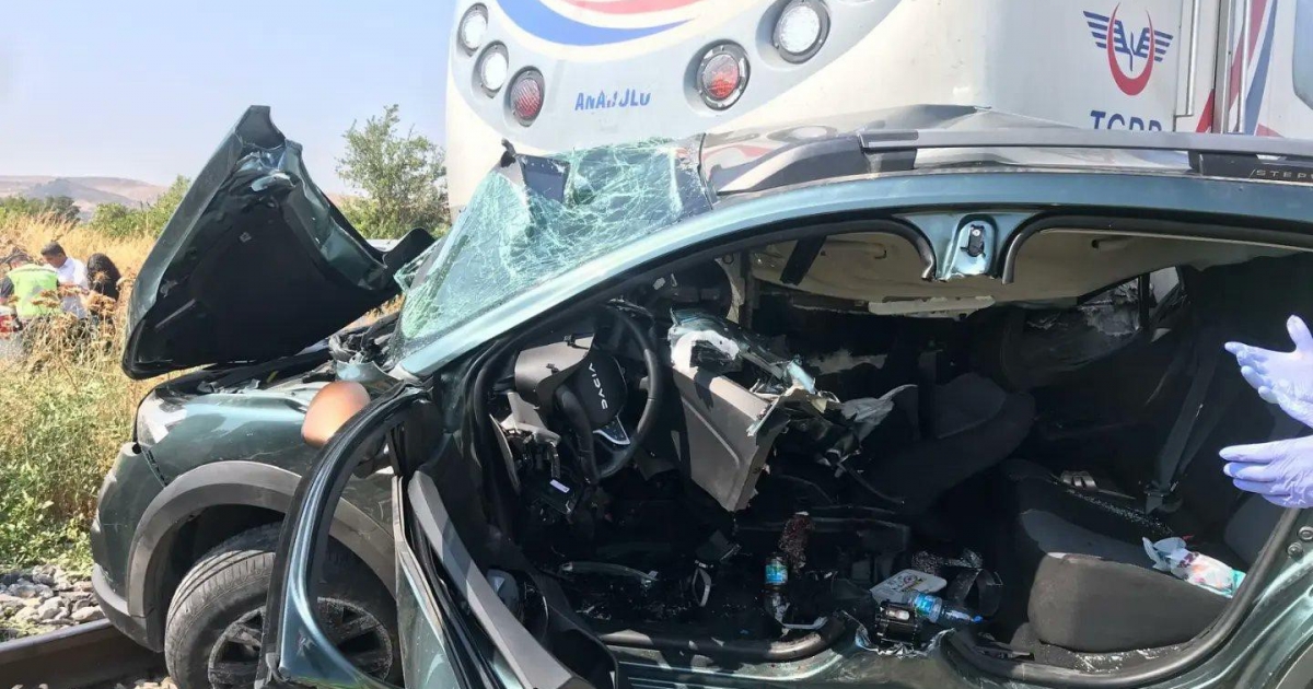 YOLCU TRENİ HEMZEMİN GEÇİTTE OTOMOBİLE ÇARPTI: 3 ÖLÜ