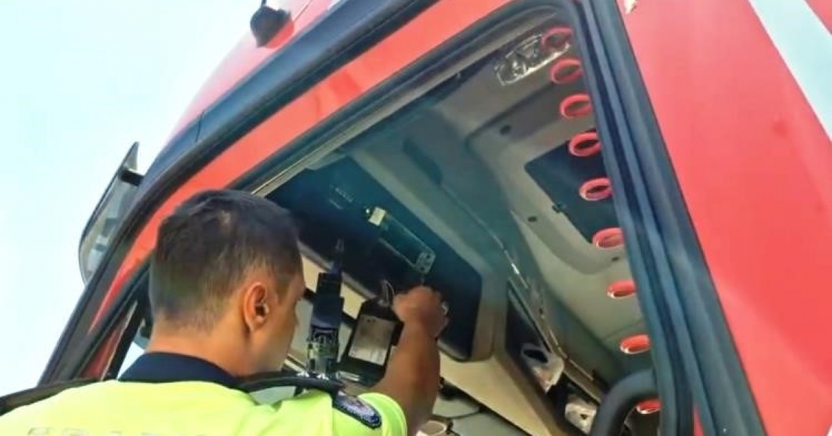 Kütahya'da trafik polisi ekipleri tarafından durdurulan yabancı plakalı tırda kumanda ile çalışan takograf düzeneği ele geçirildi.