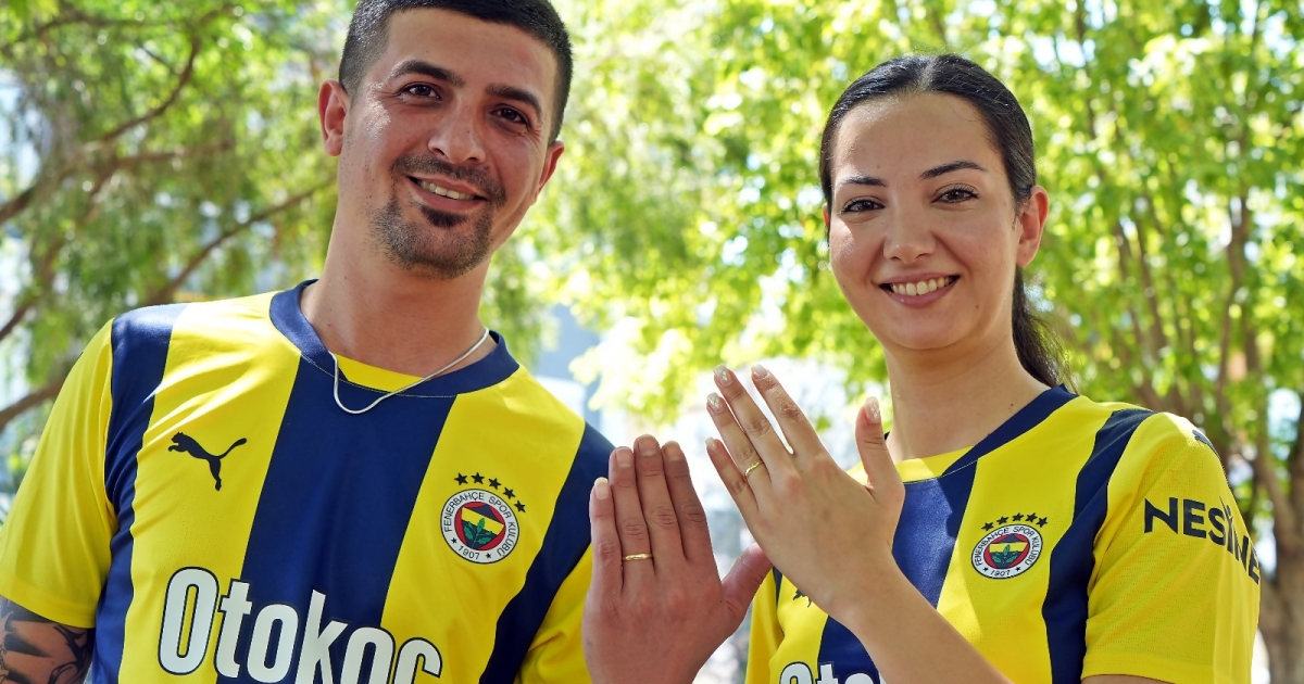 Antalya'nın Muratpaşa ilçesinde yaşayan Samet (30) ve Asena Bülbül (30), seneler önce ilkokul sınıf arkadaşıyken çok iyi arkadaş oldular. Okul zamanlarında da Fenerbahçeli olan iki arkadaş, aradan 20 yıl geçtikten sonra tekrar karşılaştı. Birbirlerine aşık olan fanatik Fenerbahçeli gençler, dünya Fenerbahçeliler günü olan 19 Temmuz'da nikah kıyarak dünya evine girdi.
