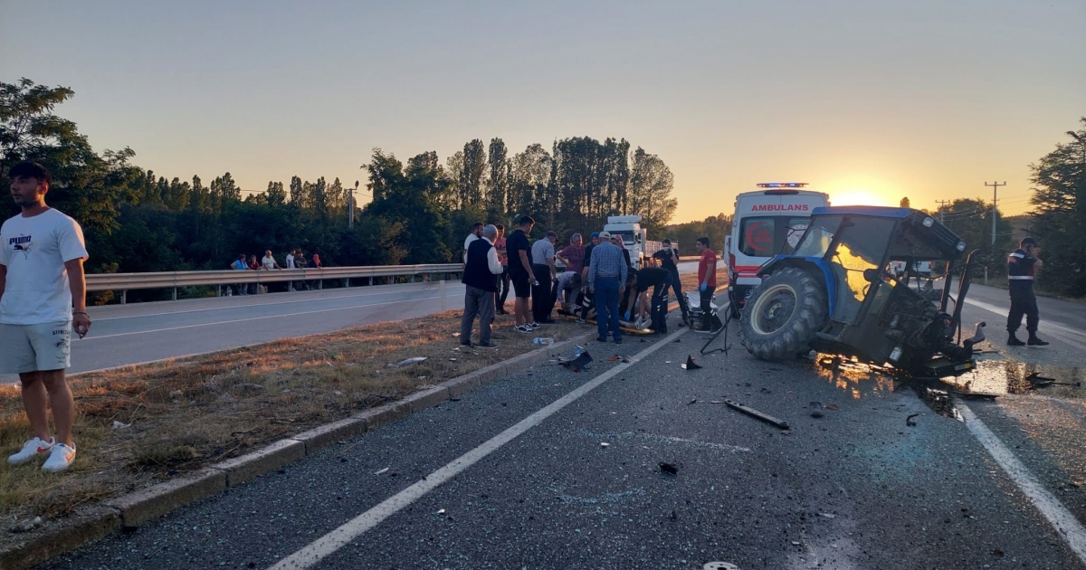 TRAKTÖRÜN ORTADAN İKİYE BÖLÜNDÜĞÜ KAZADA 3 KİŞİ YARALANDI