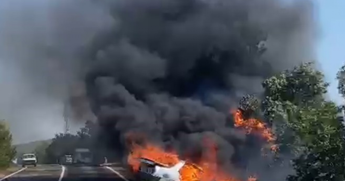 KAZA YAPAN OTOMOBİL ALEV TOPUNA DÖNDÜ