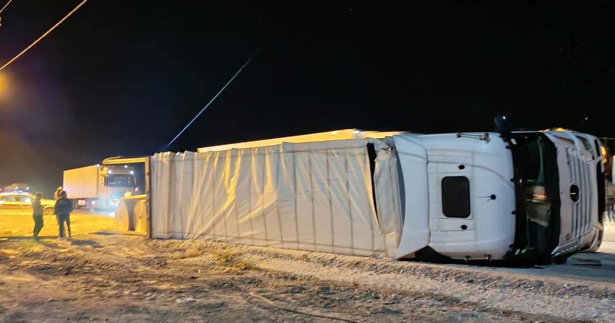 Afyonkarahisar’da rulo kağıt taşıyan tır kontrolden çıkarak devrilirken, kazada şans eseri ölen ya da yaralanan olmadı.