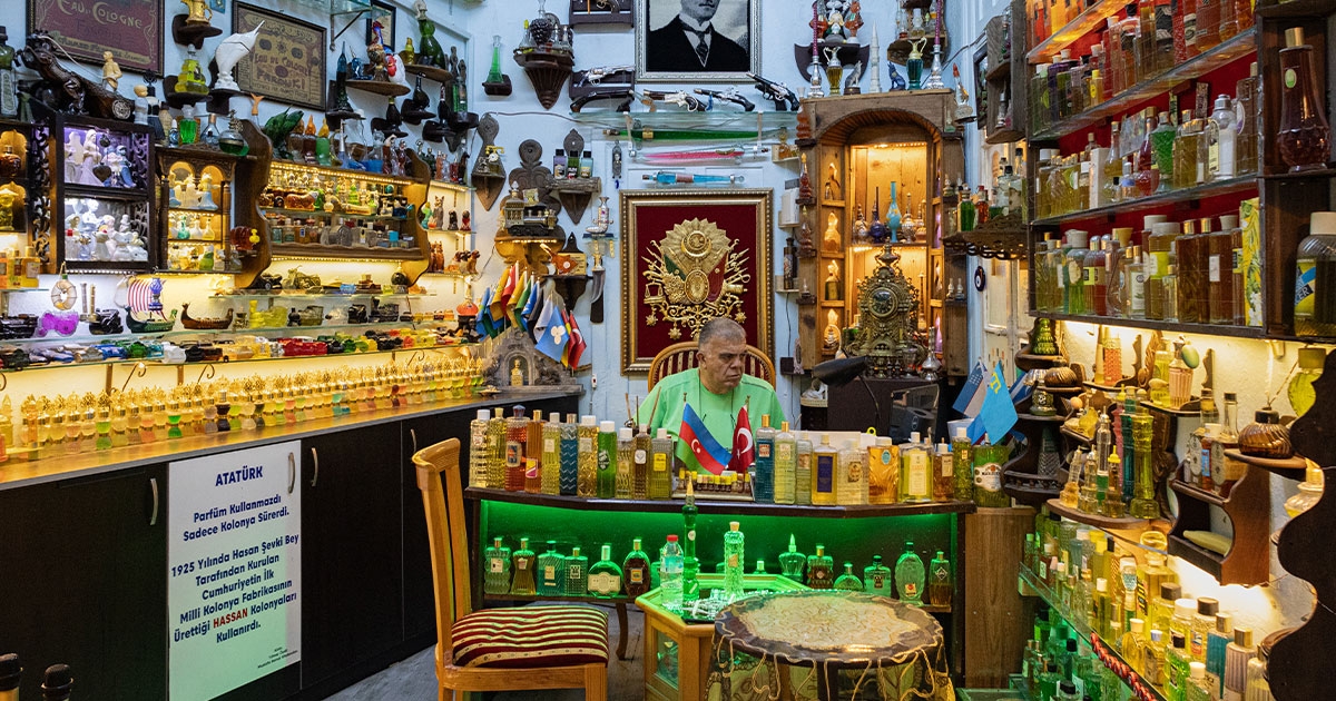100 yıllık Bahçeliler Hanı'nda mis gibi kokan kolonyaları sergileyen Ünal Çınar'ın koleksiyonunda, 1886 yılından kalan kolonyalar ve şişeleri bile var. Türkiye'nin ilk kolonyalarının da bulunabileceği paha biçilmez koleksiyon, adeta görenleri hayran bırakarak tarihi bir yolculuğa çıkarıyor. Koleksiyonda; tabanca, araba, horoz, çizgi film karakterleri, hayvanlardan oluşan ilginç kolonyalarda yer alıyor.
