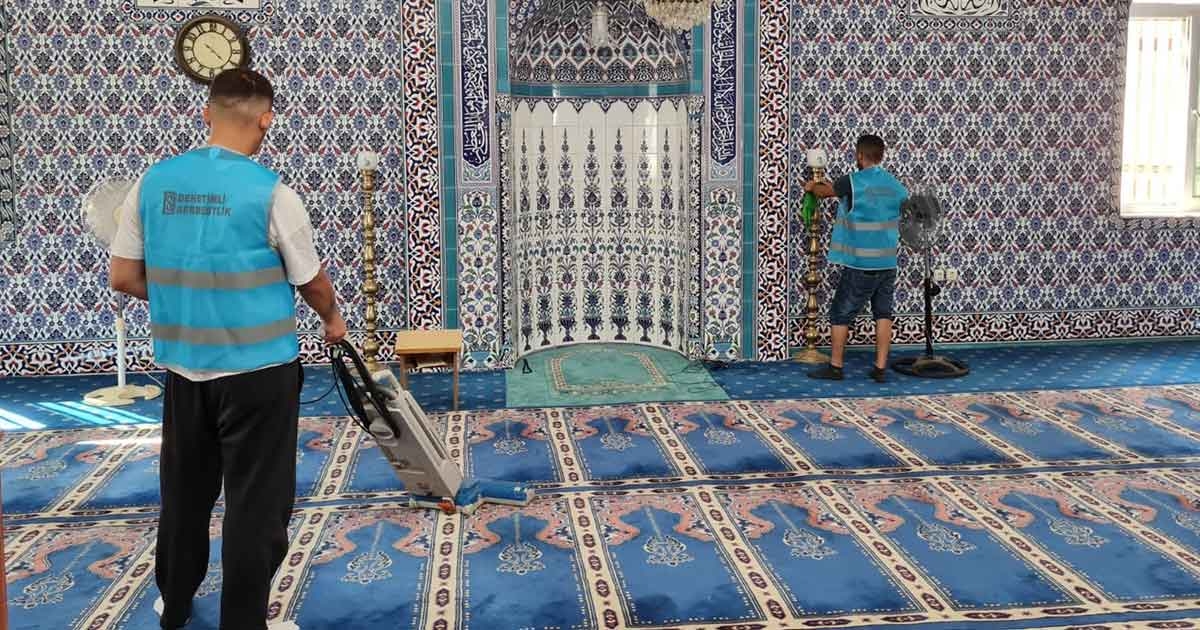YÜKÜMLÜLER CAMİLERİ TEMİZLİYOR