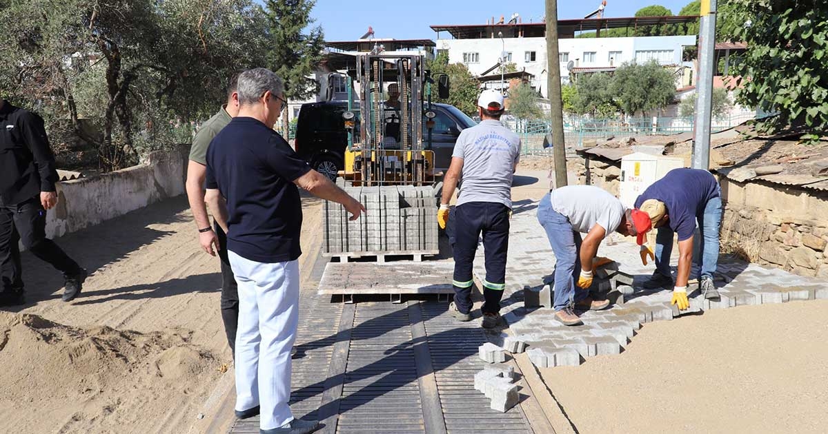 Pınarbaşı Mahallesi 685 Sokak'ta, sel tehlikesine karşı oluşturulan su kanalı çalışmasında tamamı bozulan yollar, Nazilli Belediyesi tarafından yenileniyor. Sokak ortasından geçirilen kanalın üzeri demir ızgaralar ile kapatıldıktan sonra Fen İşleri Müdürlüğü ekipleri tamamı deforme olan yolun stabilizesini gerçekleştirerek kilitli parke taşı döşemesine başladı.