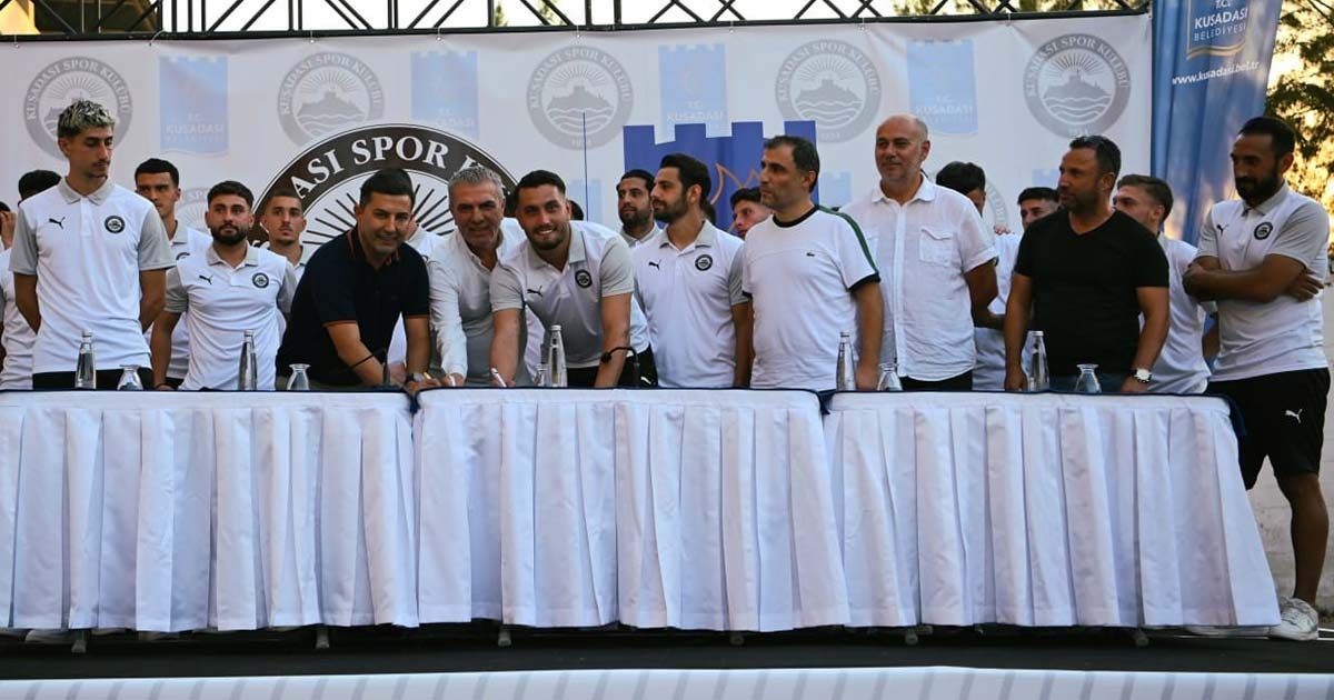 Yeni sezonun başlamasına sayılı günler kala, Kuşadasıspor kadrosuna kattığı 22 futbolcu için imza töreni gerçekleştirdi. Özer Türk Stadı'ndaki törene Kuşadası Belediye Başkanı Ömer Günel, belediye başkan yardımcıları ve meclis üyeleri, Kuşadasıspor Başkanı İsmet Türker ve kulüp yöneticileri ile çok sayıda taraftar katıldı. Büyük bir coşkuya sahne olan imza töreninde teknik heyet ve futbolcular tarafından camia ve taraftarlara 2'inci Lig'e çıkma sözü verildi.