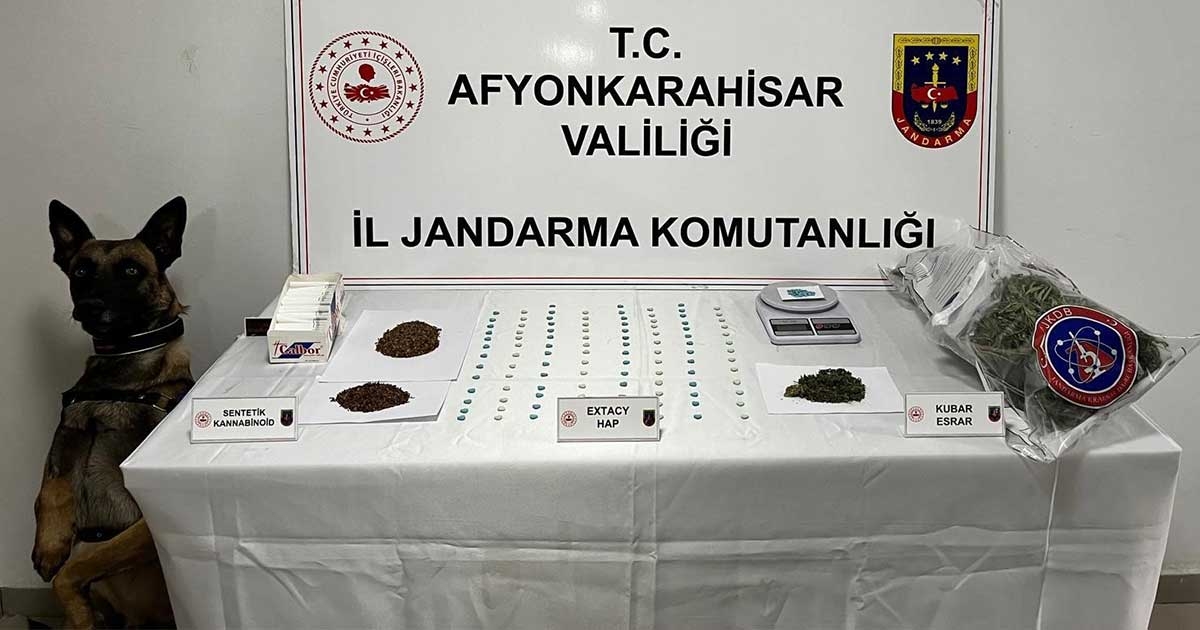 Edinilen bilgilere göre, Afyonkarahisar İl Jandarma Komutanlığına bağlı ekipler Çayırbağ beldesinde ikamet eden H.K. isimli şahsın çeşitli yollardan temin ettiği uyuşturucu maddeleri satacağı yönünde bilgi aldı. Ardından şahsın evine baskın düzenleyen ekipler eğitimli narkotik köpekleri ile yaptığı aramada 106 adet extacy uyuşturucu hap, 237 gram esrar, 2 gram skunk, 3 gram extacy kırıntısı,