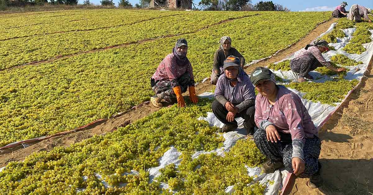 Üzüm üreticileri "14-15 liraya şaraplık üzüm alınıyor. Birde kamyon bekleniyor. Üzümlerin suyu römorklardan sızmaya başlıyor. Havalar sıcakken boş tarlalarda üzümlerimizi sermeye başladık. Kuru üzümde iyi para edecek. Zaten 7 numara üzümün kilosu 100 lira. Biz de kurutma tercih ettik." dedi.