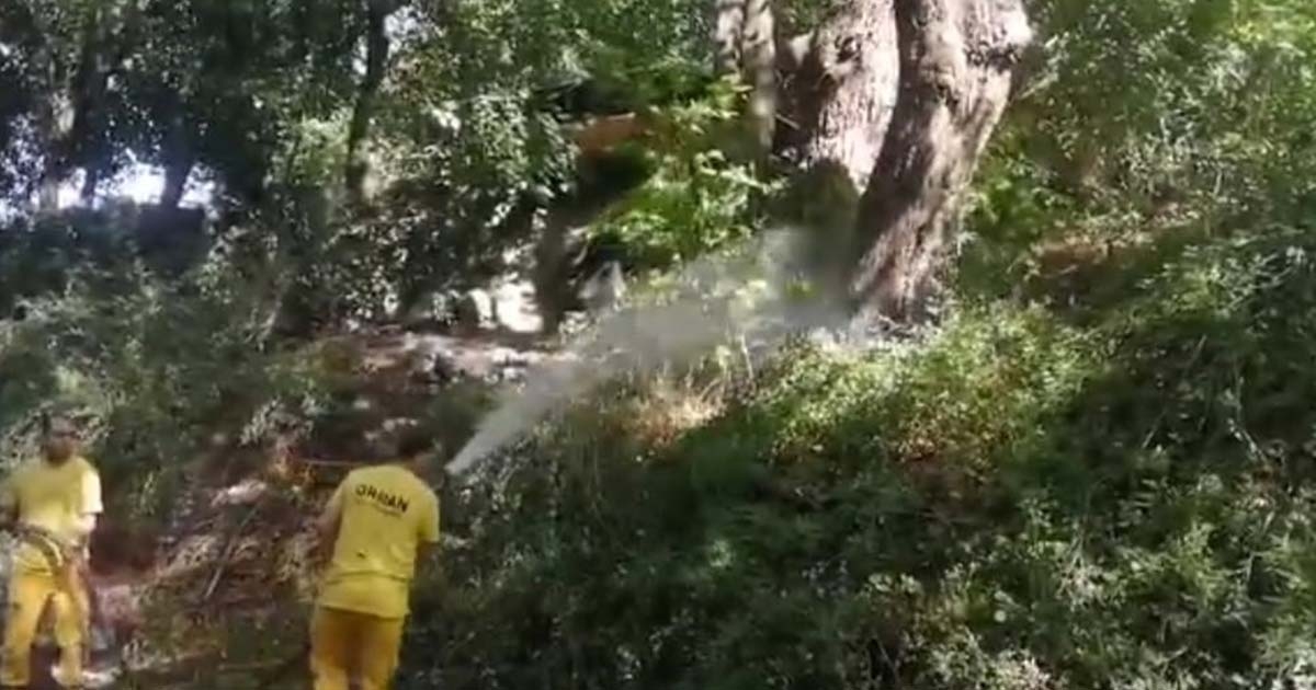 Muğla’nın Köyceğiz ilçesinde Turunçgil zararlısı uzun antenli böcek ile mücadele kapsamında Yuvarlakçay kenarında bulunan ve böceklerin konakladığı çınar ağaçlarına biyolojik preparat uygulandı.