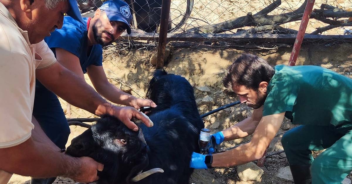 Aydın’ın Efeler ilçesi Yağcılar Mahallesi'nde Tarım ve Orman Müdürlüğü ekipleri tarafından küçükbaş hayvanlara veba ve çiçek aşısı uygulandı.