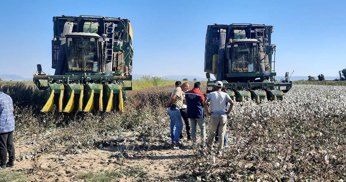 Önemli pamuk üretim merkezlerinden biri olan Söke'de pamuk hasat sezonunun başlangıcıyla birlikte, çiftçilerin makinelerini etkili bir şekilde kullanabilmesi için çalışmalar sürüyor. Söke İlçe Tarım ve Orman Müdürlüğü yetkili ekipleri bölgedeki pamuk üretiminde kalitenin artırılması ve verimliliğin sağlanması amacıyla pamuk hasat makinelerini kontrol etti. Ekipler, makinelerin teknik durumlarını, güvenlik standartlarını ve işletme verimliliğini detaylı bir şekilde inceledi. Denetim sırasında, çiftçilere hasat sürecinde dikkat etmeleri gereken noktalar hakkında bilgiler verildi. Ekipler, bu tür denetimlerin tarımsal üretkenliği artırma hedefi doğrultusunda büyük önem taşıdığını belirterek, denetimlerin tarımsal faaliyetlerde verimlilik sağlamak adına devam edeceğini kaydetti.