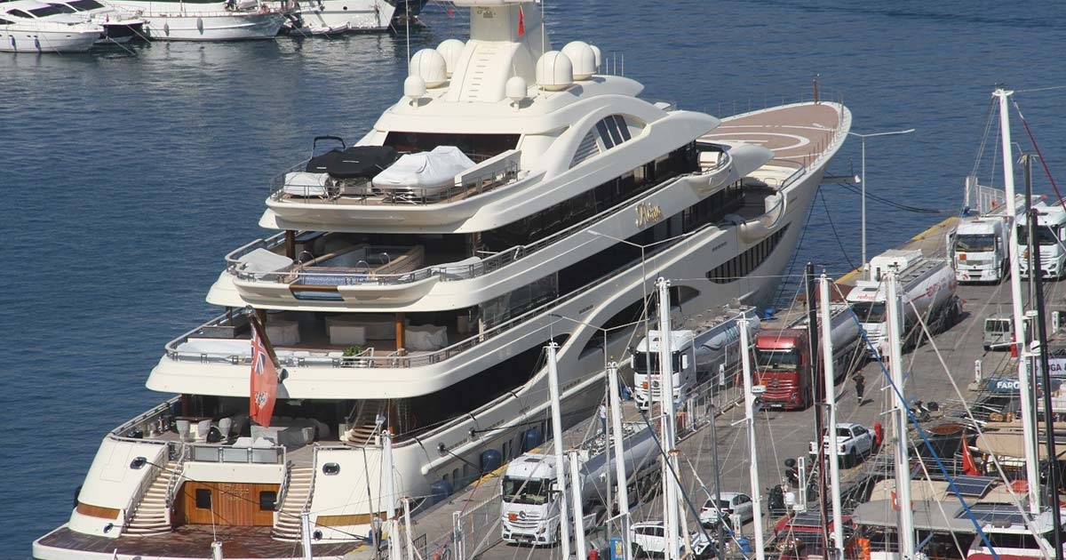 Hindistan'ın demir çelik devi ve milyarder iş adamı Lakshmi Mittal'a ait olduğu öğrenilen "Alaiya" isimli lüks yat, yakıt ikmali için Fethiye'ye geldi.