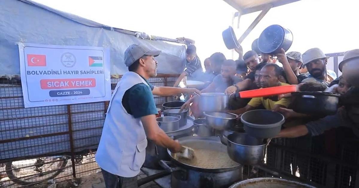 Afyonkarahisar'ın Bolvadin ilçesindeki hayırseverler, Yedi Başak İnsani Yardım Derneği ile İsrail zulmünün devam ettiği Gazze'ye ulaşarak halka sıcak yemek ikramı yaptı.